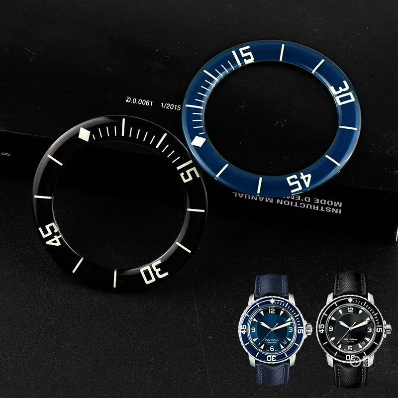 Review Top Black Blue Luminous Glass Coating Bezel Insert For Blancpain Fifty Fathoms 45mm Dial Man Watch Face